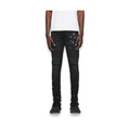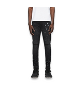 Constructed in a dark black wash, this elevated denim is designed with deconstructed slits at the knees, faded detailing, hand-applied paint splatter all over and finished with a innovative resin coating for a custom yet vintage feel.