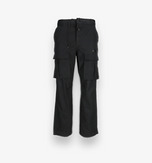 The Speeder Fugitive Cargo Black is a relaxed fit cargo pant with a mid-rise design. Features include a fully elasticated waistband with a zipper fly front and an internal drawcord. The hems are elasticated with toggle fasteners and features 6 pockets including 2 frontward-facing cargo pockets, 2 side and 2 back press-studded pockets. Constructed from premium black cotton twill with a garment wash treatment. This pant showcases a tonal raised rubber printed logo and is finished with Ksubi's signature embroidery and branded hardware.