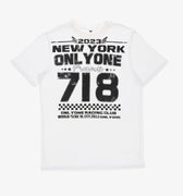 Make a statement with the Only One Racing Club T-Shirt, designed for those who love unique streetwear. This trendy tee features an eye-catching graphic print, showcasing '2023 NEW YORK' and 'Presents 718' prominently, along with dynamic racing club details. Crafted from high-quality materials, this t-shirt ensures comfort and durability for everyday wear. Perfect for casual outings or lounging, it embodies the spirit of modern street style. Elevate your wardrobe with the Only One Racing Club T-Shirt and express your individuality in every setting